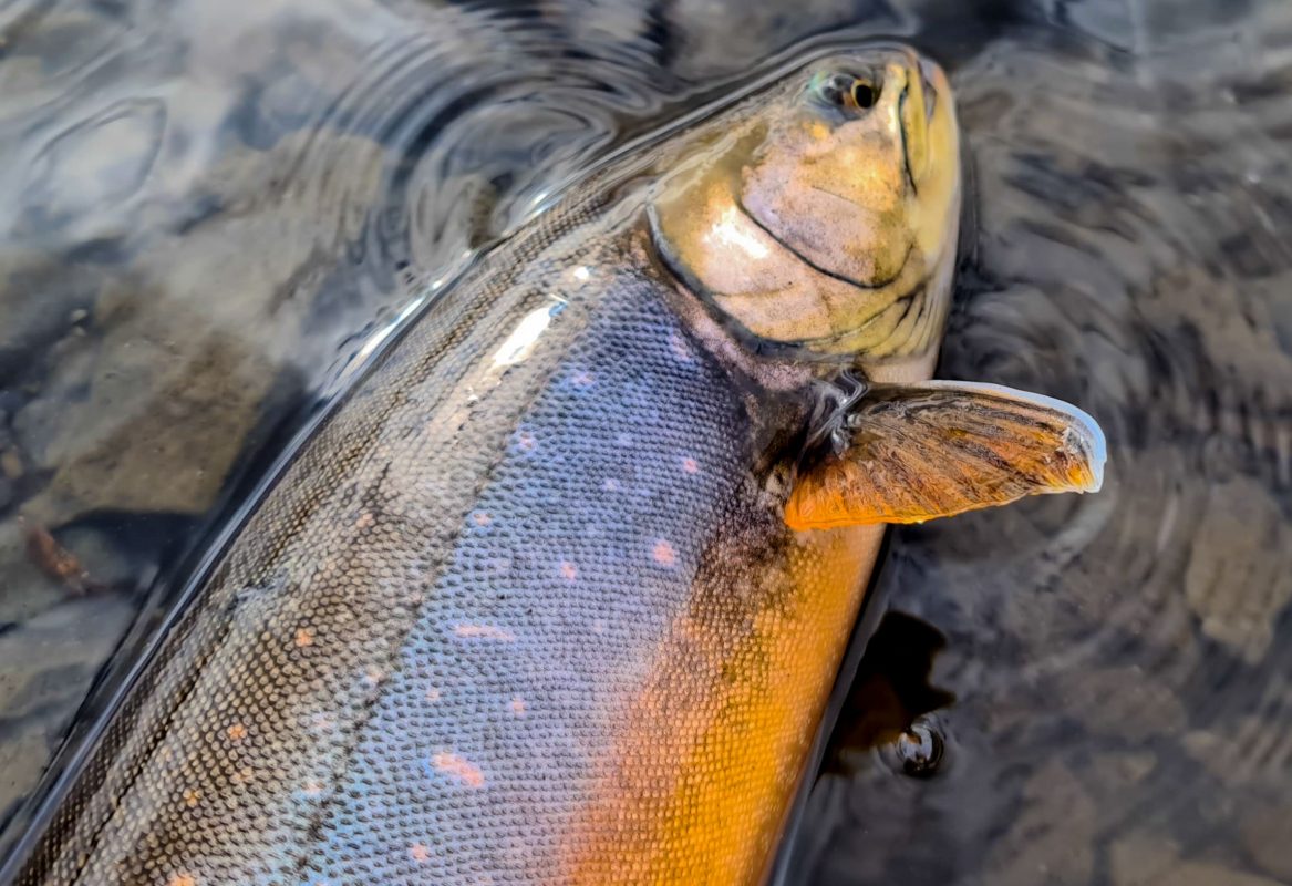 Þingvallaurriði sem féll fyrir Black Gnat þurrflugu.