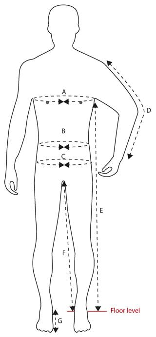 | Frá handarkrika að hæl | 125 | 127 | 134 | 140 | 145 | 147 | 152 |