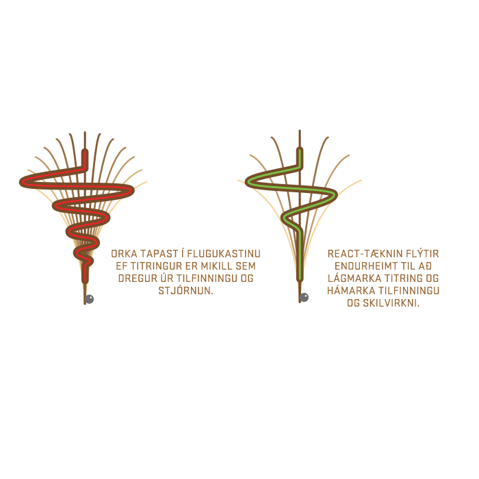 ReAct-tæknin sameinar X-Core hönnunina frá Scott og þá tækni sem fyrirtækið notar til að mjókka fram stangarhlutana. Í raun er um byltingu að ræða í hönnun á hröðum (e. Fast Action) flugustöngum. Þegar flugulínu er kastað myndast bylgjur í flugustönginni sem valda titringi, jafnvel eftir að kastið hefur verið framkvæmt. Þessi titringur dregur úr mögulegri kastlengd, nákvæmni og stjórn stangarinnar. Margir stangarframleiðendur vestanhafs gera stangir sínar einfaldlega enn stífari til að minnka þennan titring, en með því er verulega dregið úr jákvæðri upplifun veiðimannsins og tilfinningu fyrir fiski. ReAct-tæknin vinnur gegn titringi með því að flýta fyrir endurheimt stangardúksins án þess að stöngin verði stífari. Þetta þýðir að tilfinningu veiðimannsins er ekki fórnað með hraðari stöng sem hlýtur að teljast afar jákvætt í öllum skilningi. Centric stangirnar eru því eins og Scott kallar þær „Fast and Feel“.