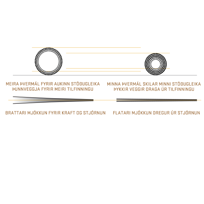 - Kastar jafn langt ef ekki lengra en sambærilegar stangir með minna afli.