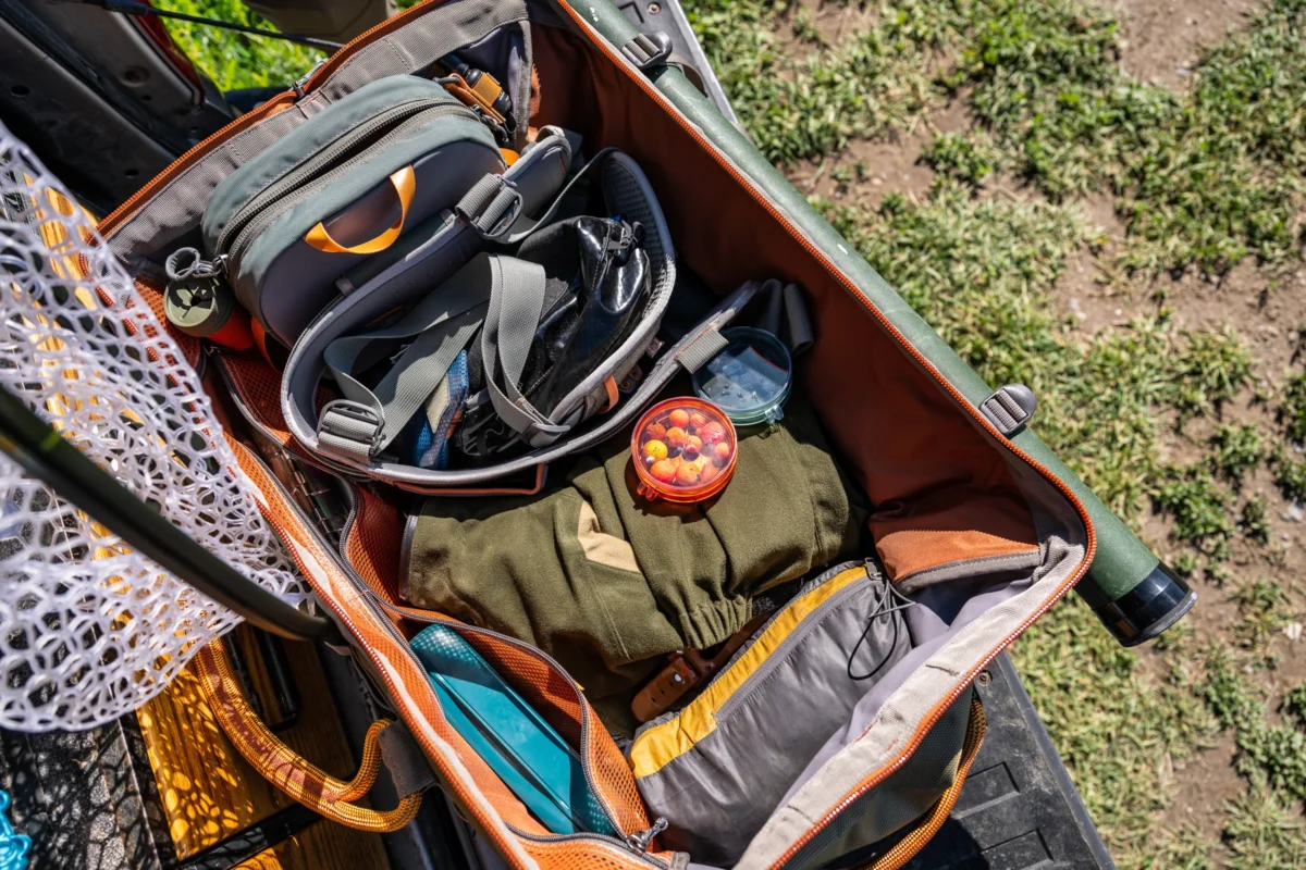 Ný og endurbætt útgáfa af hinni geysivinsælu Cimmaron vöðlutösku frá Fishpond. Þessi frábæra taska sameinar allan veiðifatnað á einn stað. Neðri hluti töskunnar er hugsaður undir vöðlur og vöðluskó, en efri hlutinn undir vöðlujakkann og annan hlífðarfatnað.