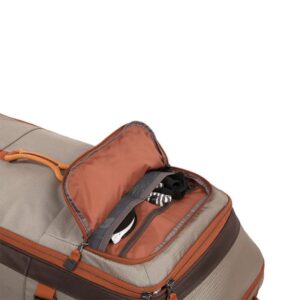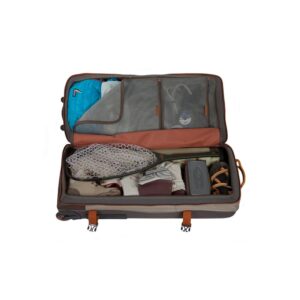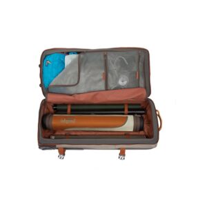 Grand Teton ferðataskan er úthugsuð ferðataska frá Fishpond fyrir veiðimenn á ferðalagi. Taskan rúmar 6 fjögurra hluta stangarhólka, vöðlurnar, skóna, háfinn, fatnaðinn og hvaðeina sem þarf með í veiðiferðina. Hún er með hörðum botni, mörgum vösum og hólfum. Taskan er framleidd úr slitsterku efni og þolir því mikið hnjask. Á henni er útdraganlegt handfang og góð hjól sem þola mikla þyngd.