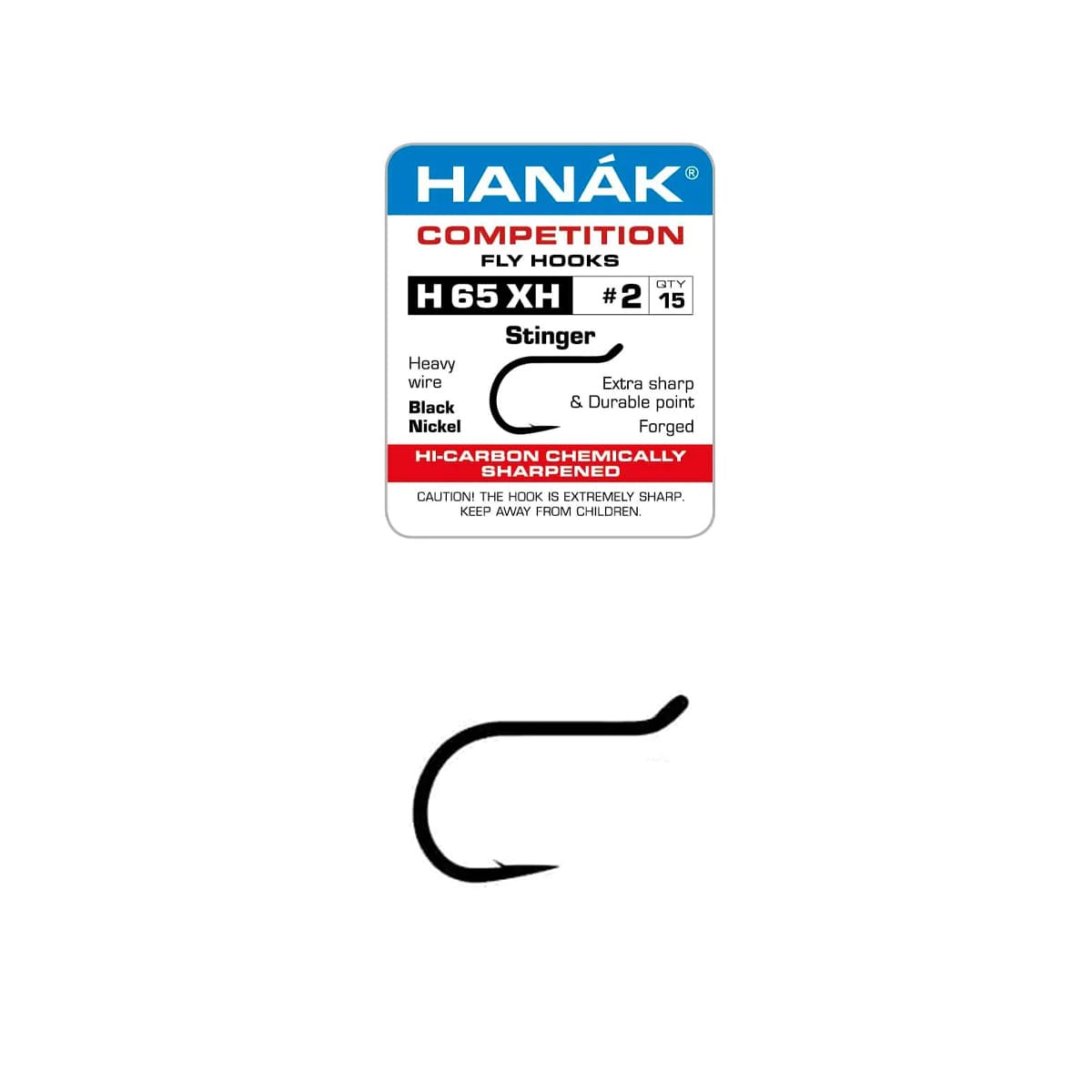 Hanak Barbed Stinger Heavy Wire H65 XH er öflugur og sérhæfður krókur sem er hannaður sem stinger eða trailer á stórar straumflugur. Krókurinn er með stuttan legg og 45 gráðu uppsveigðu auga (up eye), sem gerir hann sérstaklega hentugan til að festa aftan við aðalkrók, til dæmis með vír.