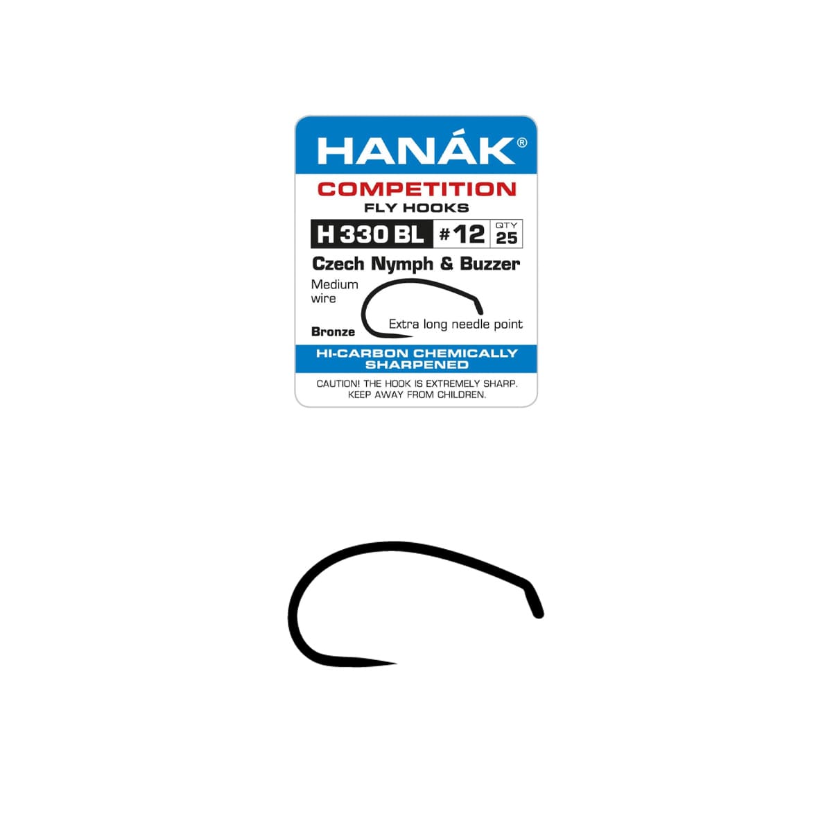 Hanak CN & Buzzer H330 BL er alhliða hnýtingakrókur sem hentar einstaklega vel í Czech-púpur og buzzera. Krókurinn er smíðaður úr miðlungssterkum bronsvír sem veitir gott jafnvægi milli styrks og léttleika og hentar vel í púpur á borð við caddis-lirfur.