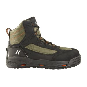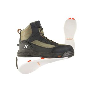 Greenback vöðluskórnir frá Korkers eru með útskiptanlegum sólum, en kaupunum fylgir stöðugur filtbotn. Aukalega er hægt að fá gúmmísóla, neglda filtsóla eða neglda vibram. Vöðluskórnir eru framleiddir úr fljótþornandi efnum og eru með sérstakar rásir í botni til að vatn eigi greiða leið úr skónum. Frágangur er vandaður og saumar styrktir til að auka endingu. Skórnir reimast hátt upp á ökklann og veita notandanum góða stuðning og þægindi.