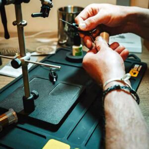 Með þessari mottu geturðu einbeitt þér að því sem skiptir mestu máli – að hnýta flugur – án þess að eyða tíma í að leita að verkfærum eða efnum. Þetta er ómissandi aukahlutur fyrir alla fluguhnýtara sem vilja hámarka skilvirkni og halda vinnusvæðinu hreinu og skipulögðu.