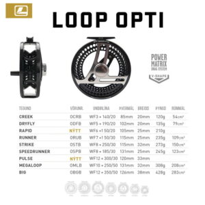Hjólin eru öll breiðkjarna (e. large arbor) en séreinkenni Loop Opti er V-laga hönnun spólunnar. Uppbygging hjólsins gerir veiðimönnum kleift að ná inn slaka flugulínunnar hratt og örugglega en slíkur eiginleiki nýtist laxveiðimönnum sérstaklega vel. V-laga hönnunin skilar því umfram hefðbundin hjól að línan leggst betur þegar hún er spóluð inn auk þess sem dregið er úr minni línunnar.