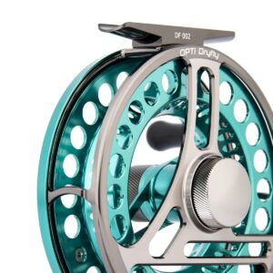 Loop Opti Dry Fly í litnum Aurora Turquoise er hjól sem hefur verið þróað sérstaklega fyrir nákvæmni og léttleika í fluguveiði, þar sem hvert smáatriði skiptir máli. Það tryggir gott jafnvægi og stjórn í veiðinni, og léttleikinn gerir það að áreiðanlegum félaga á löngum dögum við veiðar.