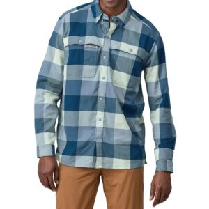 Early Rise Stretch veiðiskyrtan frá Patagonia er fjölhæf og endingargóð miðlungsþykk flík, hönnuð sérstaklega fyrir veiðimenn sem þurfa þægindi, hreyfanleika og vörn gegn veðri. Hún er úr slitsterku tvíofnu efni sem samanstendur af endurunnu pólýesteri og lífrænni bómull, með mjúkri áferð að innan og vatnsfráhrindandi DWR-áferð að utan.
