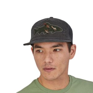 Stílhrein derhúfa frá Patagonia í gráum lit. Húfan er með hárri krúnu og er framleidd úr lífrænni bómull og endurunnu pólýesterneti. Framan á derhúfuna má festa flugur á svokallaðan Fly Catcher. Varan er Fair Trade vottuð.