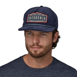 Flott dökkblá derhúfa frá Patagonia með útsaumuðu merki að framanverðu. Húfan er með hárri krúnu og er framleidd úr lífrænni bómull og endurunnu pólýesterneti. Framan á derhúfuna má festa flugur í svokallaðan Fly Catcher. Varan er með Fair Trade vottun.