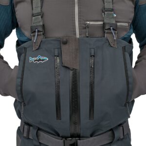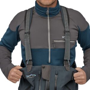 Swiftcurrent Expedition Zip-Front eru stórglæsilegar renndar öndunarvöðlur frá Patagonia sem framleiddar eru úr þriggja- og fjögurra laga öndunarefni. Patagonia hefur prófað og þróað H2No® efnið undanfarinn áratug, en það er nú orðið slitsterkara og þjálla en áður. Vöðlurnar eru sérstaklega styrktar í klofi og skálmum svo veiðimenn þurfi ekki að hafa áhyggjur af saumum þegar gengið er um brattlendi eða í öðrum krefjandi aðstæðum. Þá eru vöðlusokkarnir sérstaklega hannaðir til að standast mikið álag en þeir eru ekki framleiddir úr hefðbundnu neoprene-efni. Þess í stað notar Patagonia blöndu af gúmmíefnum, samskonar þeim sem notuð eru í blautbúninga.