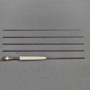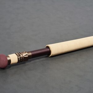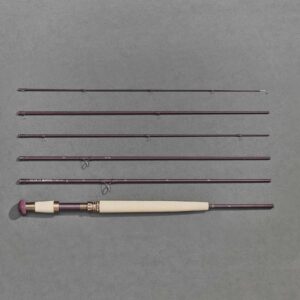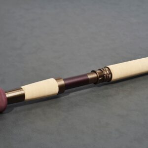 Stöngin er í 6 pörtum og pakkast niður í 65 cm, sem gerir hana að frábærum ferðafélaga. Útlitið er fágað og klassískt – mattur bordeaux-rauður stangardúkur með samlitum vafningum, brons hjólasæti og vönduðu korkhandfangi. Þar að auki er málband áletrað á stöngina – til að mæla og sleppa af nákvæmni.