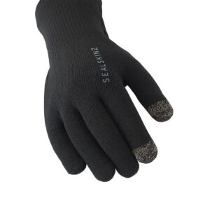 Sealskinz notar einstaka þriggja laga uppbygginu í hanskana, þá sömu og fyrirtækið notar við framleiðslu á útivistarsokkunum. Hanskarnir eru með 100% vatnsheldri filmu að utanverðu, en úrvals merino-ull að innanverðu. Ullin veitir mikla hlýju og dregur úr svitamyndun. Ytra byrði hanskans er úr nælonefni með fjögurra þátta teygju sem tryggir aukin þægindi og meiri hreyfanleika.