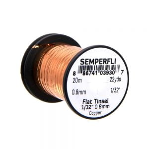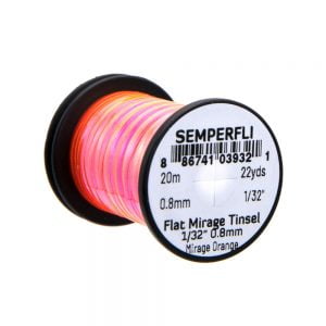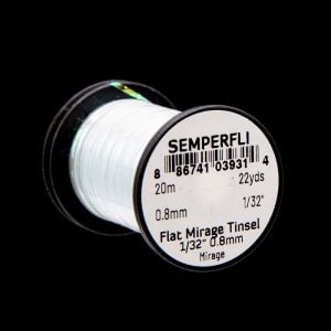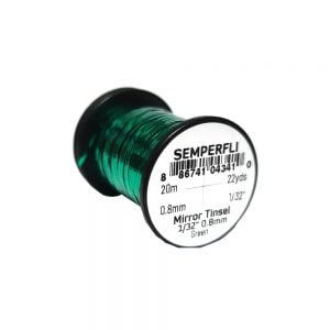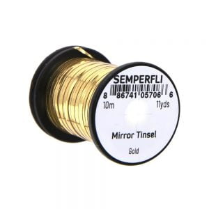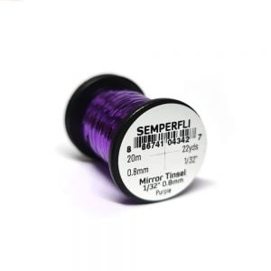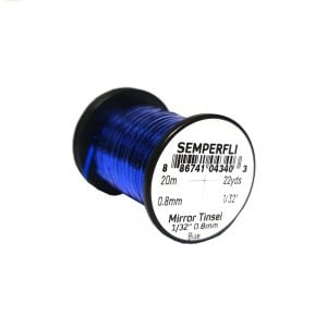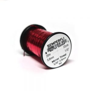 Mirror Tinsel Medium er gott alhliða tinsel frá Semperfli. Það er 0,8mm (1/32″) að breidd sem er hentugt í meðalstórar púpur, straumflugur og laxaflugur. 20 metrar efnisins eru á hverju kefli og er það fáanlegt í nokkrum litum.