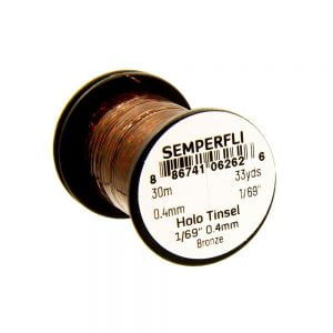 Mirror Tinsel Medium er gott alhliða tinsel frá Semperfli. Það er 0,8mm (1/32″) að breidd sem er hentugt í meðalstórar púpur, straumflugur og laxaflugur. 20 metrar efnisins eru á hverju kefli og er það fáanlegt í nokkrum litum.