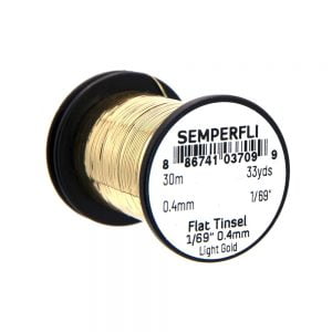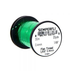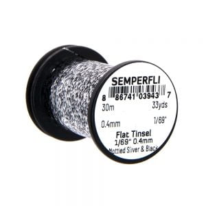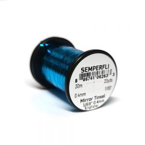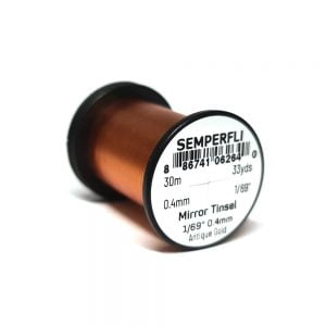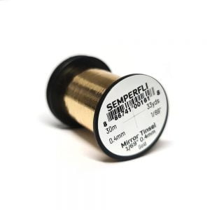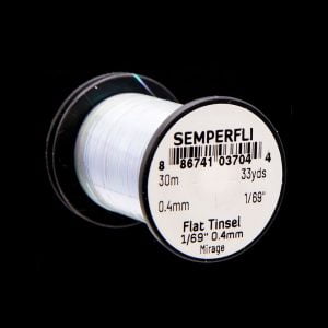 Mirror Tinsel Small er grennsta flata tinselið sem Semperfli framleiðir, 0,4mm (1/69″) á breidd. Það hentar vel til hnýtinga á smærri flugum, bæði í lax og silung. Efnið má nota sem búkefni en einnig sem vöf. 30 metrar eru á hverju kefli og fæst í mörgum litum.