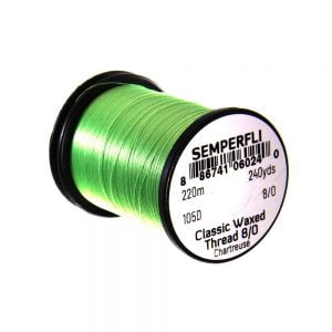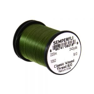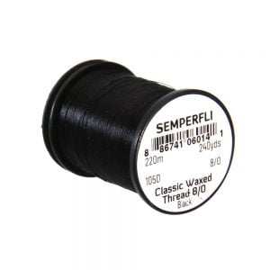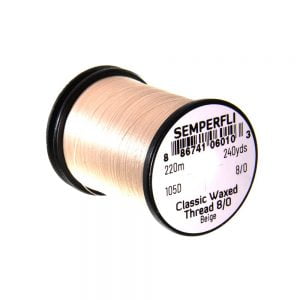 Classic Waxed 8/0 er vaxborinn fluguhnýtingaþráður sem hannaður er til alhliða nota. Hann hentar til hnýtinga á laxaflugum, straumflugum, púpum og þurrflugum í stærðum #6-#14. Þráðurinn er flatur með tvo kjarna svo auðvelt er að skipta honum upp, s.s. þegar dubb er vafið.