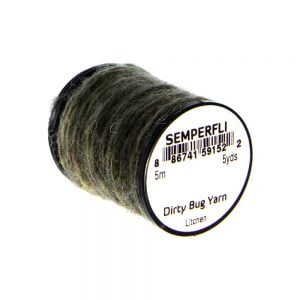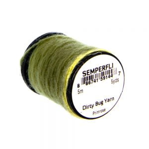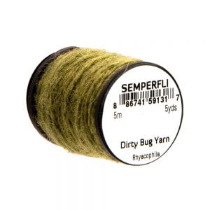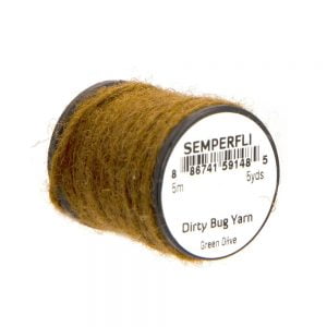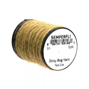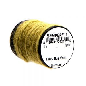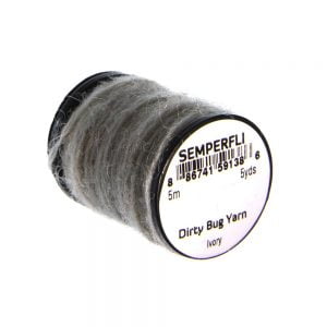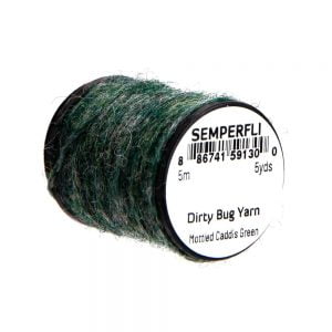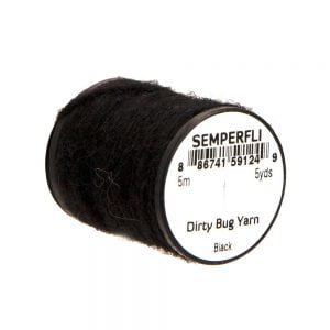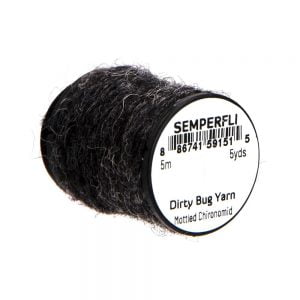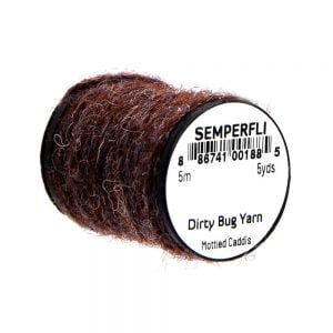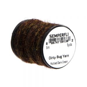 Dirty Bug Yarn er tilvalið sem búkefni eða kragi í púpur, en hentar einnig í straumflugur, rækjur og þurrflugur. Efnið kemur raunar í stað hefðbundins dubbs, þar sem mörgum litum er blandað saman til að ná fram tilteknu útliti. Þó er hægt er að blanda saman ólíkum þráðum ef þörf krefur. Efnið er fáanlegt í fjölmörgum litasamsetningum sem gaman er að leika sér með. Á hverju kefli eru 5 metrar af þessu frábæra efni.