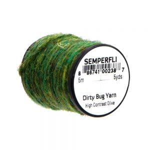 Dirty Bug Yarn er einstaklega skemmtilegt fluguhnýtingaefni sem hentar sérlega vel til hnýtinga á silungaflugum. Það er ólíkt mörgum sambærilegum efnum enda er það ekki einlitt, heldur blanda af mörgum litum. Náttúrulegt æti fiska er sjaldnast einlitt og því er garnið kjörið til að kalla fram ólík litaafbrigði. Efnið býður sannarlega upp á ótal möguleika við hnýtingar.