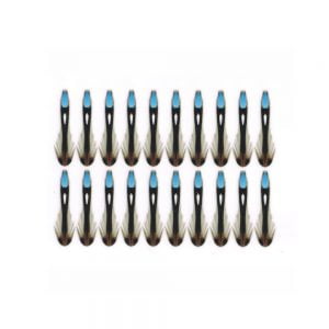 Jungle Cock-efnið er fáanlegt í fimm mismunandi litum og fjórum stærðum: 10mm, 17mm, 24mm og 30mm.