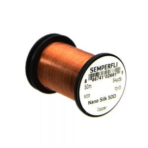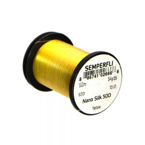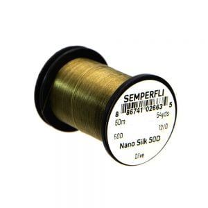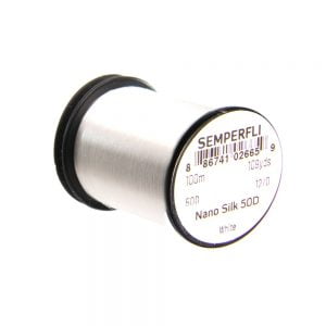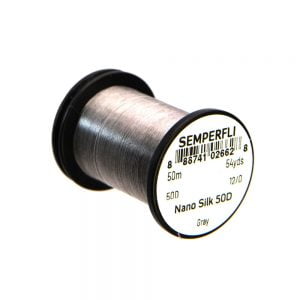 Nano Silk 50D 12/0 er hannaður til hnýtinga á flugum í stærðum #8-#18, hvort heldur lax- eða silungaflugur. Á hverju kefli eru 50 metrar, nema svartur og hvítur sem eru á 100 metra keflum.