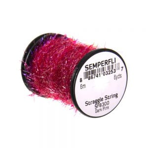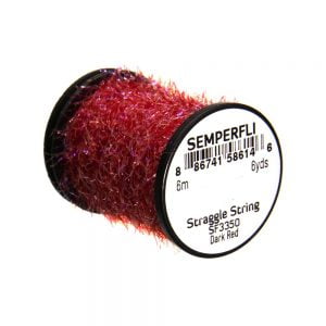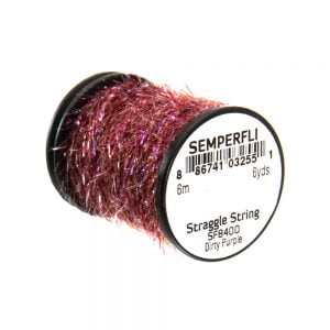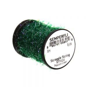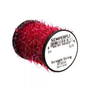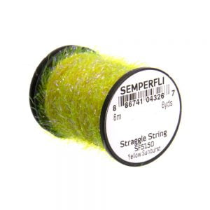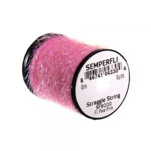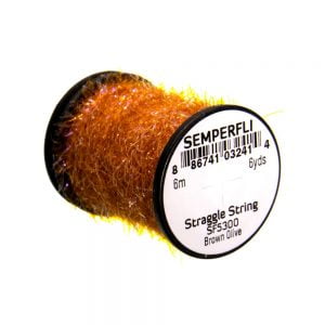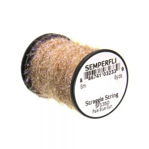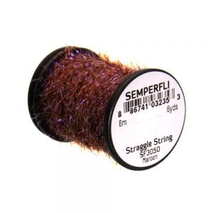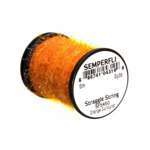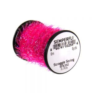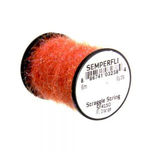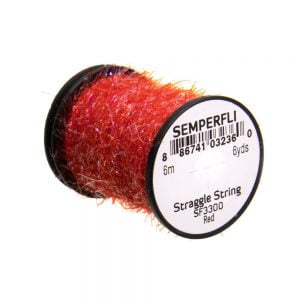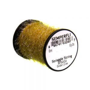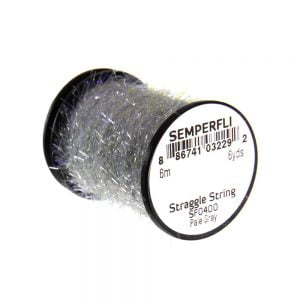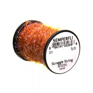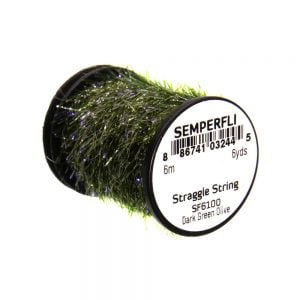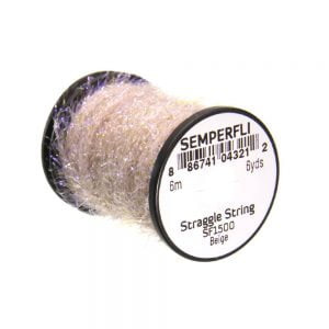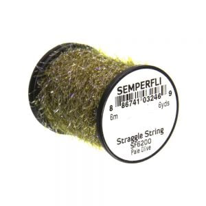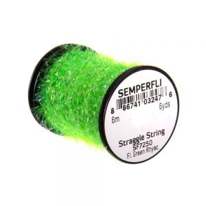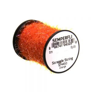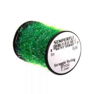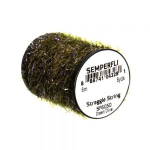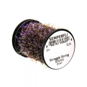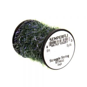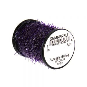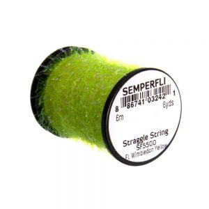 Straggle String er fíngert chenille frá Semperfli. Það er aðeins 4 mm að sverleika og nýtist því vel í smærri flugur. Efnið hentar vel í kraga aftan við kúluhaus, sem fætur á púpur eða sem búkefni. Það má nota eitt og sér en einnig er hægt að vefja tveimur litum saman til að ná fram einstöku útliti.