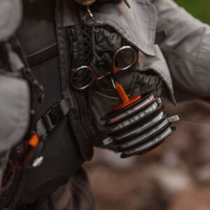 Smith Creek taumaspóluhaldarinn er þægileg og vönduð lausn fyrir veiðimenn sem vilja hafa taumaspólurnar sínar vel skipulagðar og aðgengilegar á meðan veitt er. Þessi létti og endingargóði taumaspóluhaldari festist auðveldlega við fatnað, bakpoka, mittistöskur eða vesti, sem tryggir að þú hafir spólurnar alltaf við höndina þegar þú þarft á þeim að halda.