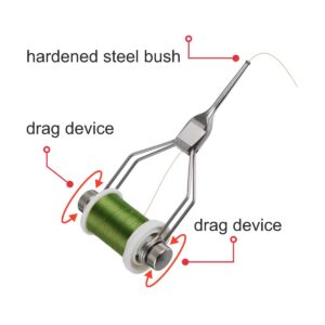 Þessi keflishalda hentar öllum stærðum spóla og rúllar mjúklega upp á sig fínustu þræði – sem gerir hana frábæra í þurrflugur, dubbing og nákvæmar smáflugur.