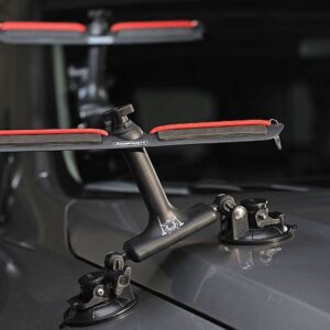 Sumo stangahaldararnir frá RodMounts eru hannaðir til að bera allt að sex veiðistangir af ýmsum gerðum á öruggan og þægilegan hátt. Þeir eru búnir fjórum sjálfstæðum sogskálum með læsivirkni, sem tryggir sterka festingu við hvaða slétta og ógegndræpa yfirborð sem er, þar á meðal gler, ál, stál, plast, trefjaplast og koltrefjar. Þessi hönnun gerir þá einstaklega fjölhæfa og auðvelda í notkun á flestum farartækjum.