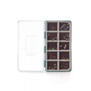 Þetta flugubox er með tvöfalt geymslupláss og rúmar margar flugur, allt að 336 stk. Tacky fluguboxin frá Fishpond eru með sílikonbotni sem drekkur ekki í sig vatn, þolir miklar hitasveiflur og tætist ekki upp vegna beittra króka.