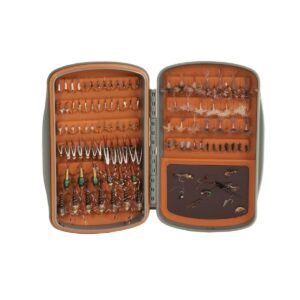 Þrælsniðugt flugubox frá Tacky sem rúmar allt að 143 flugur. Það er að með vatnsheldri lokun og hentar vel í dagstúrinn. Í botni boxins er sérstakur segull til að geyma flugur. Stærð þess er 13x8x2,5 cm.