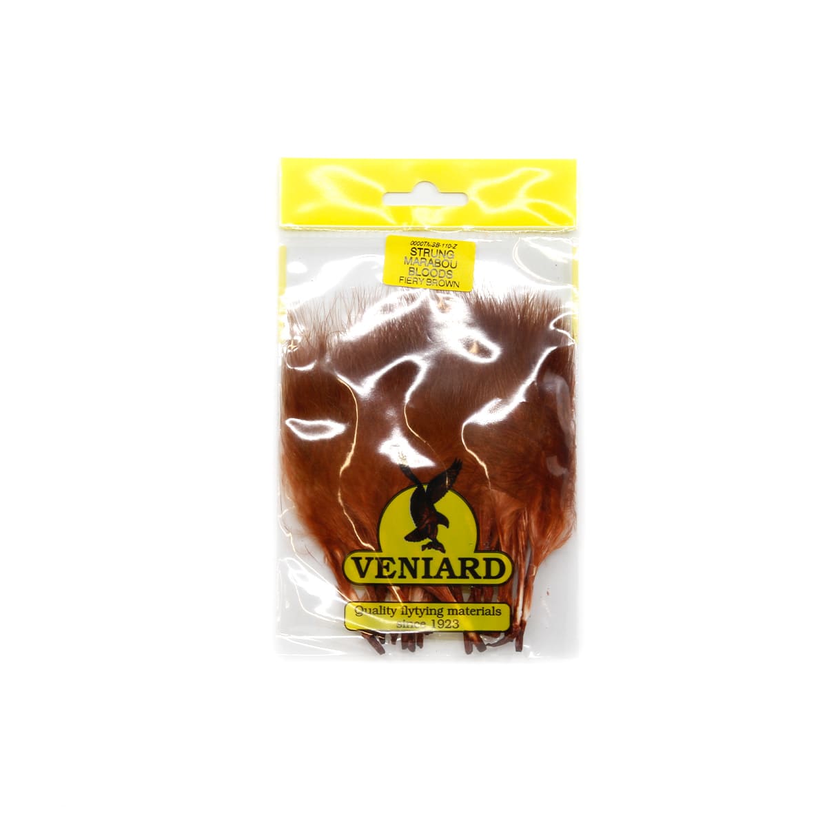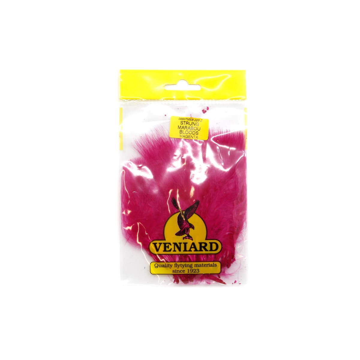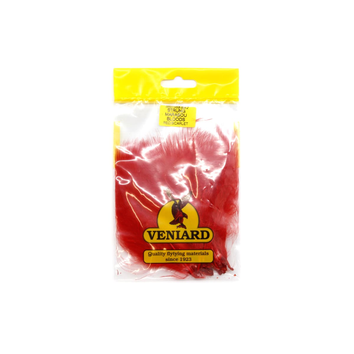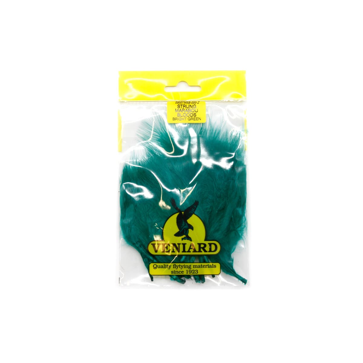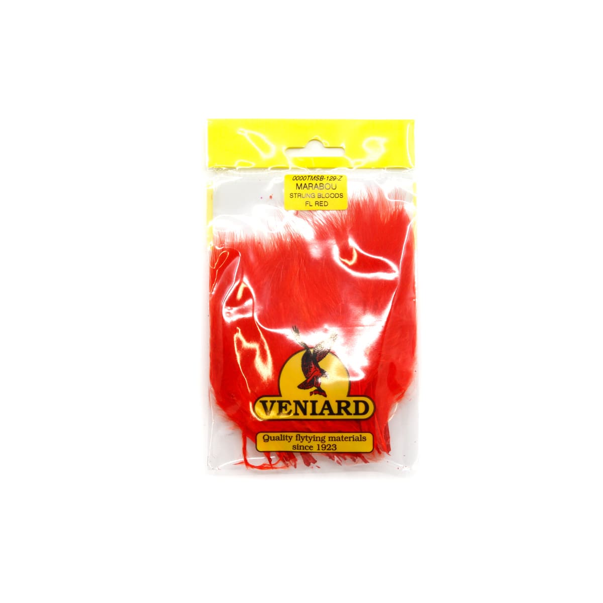 Turkey Marabou Strung Bloods frá Veniard eru marabou-fjaðrir úr yngri fuglum sem eru strengdar saman og ekki á stilk, ólíkt Large Selected Marabou. Þetta gerir fjaðrirnar styttri og grennri, sem hentar vel í smærri og miðlungsstórar flugur þar sem nákvæm stjórn á magni og lengd skiptir máli.