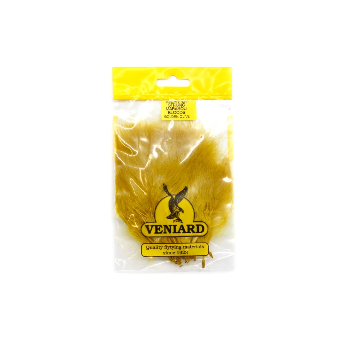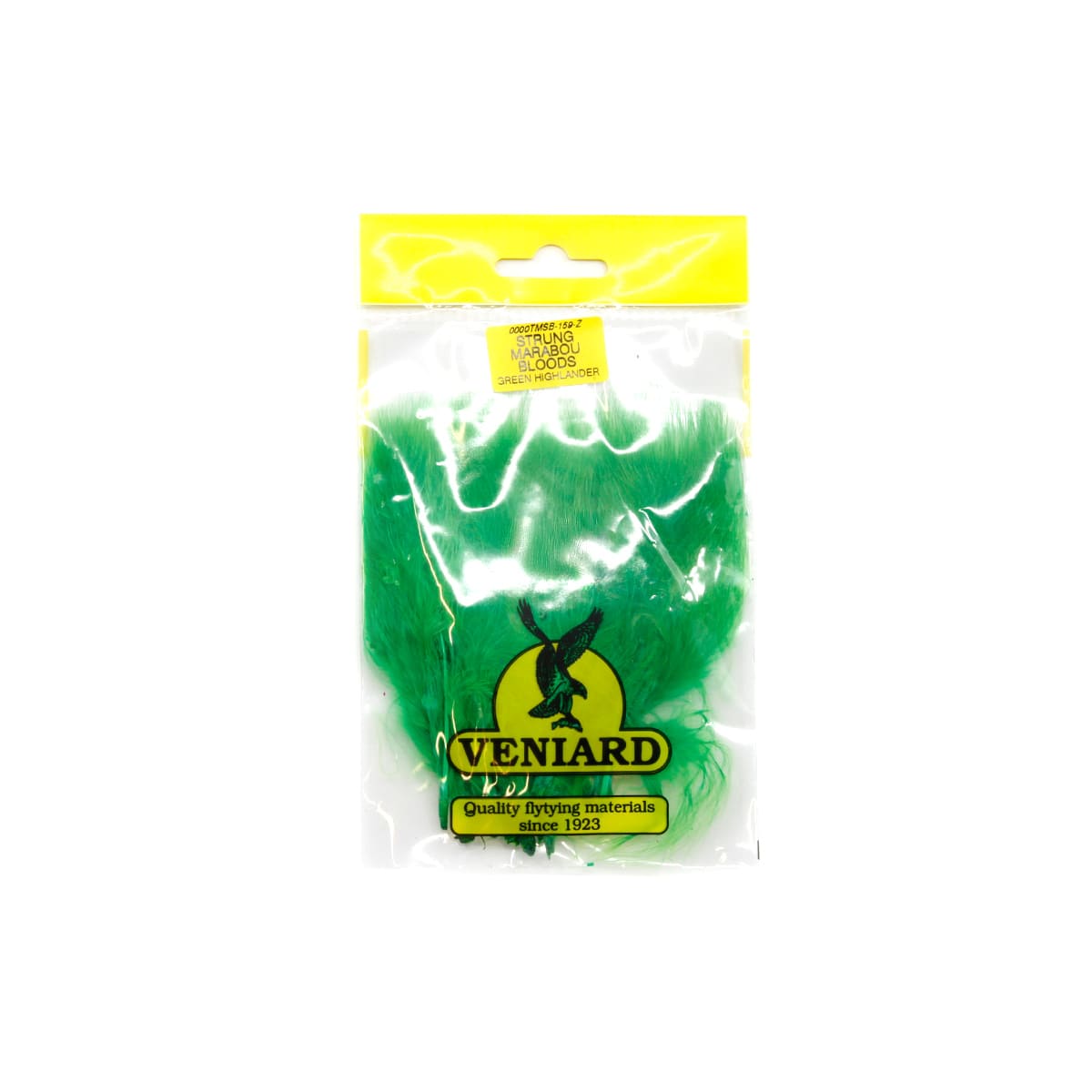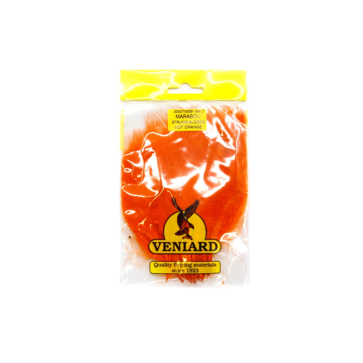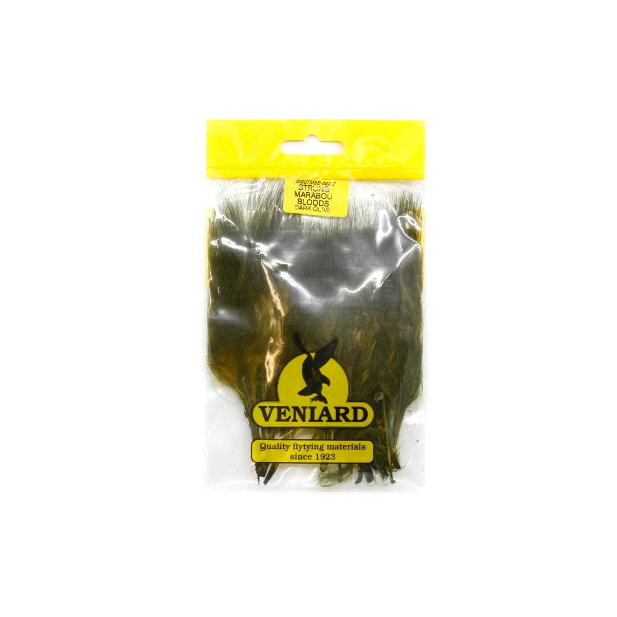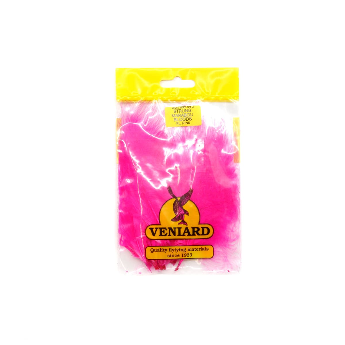 Turkey Marabou Strung Bloods frá Veniard eru marabou-fjaðrir úr yngri fuglum sem eru strengdar saman og ekki á stilk, ólíkt Large Selected Marabou. Þetta gerir fjaðrirnar styttri og grennri, sem hentar vel í smærri og miðlungsstórar flugur þar sem nákvæm stjórn á magni og lengd skiptir máli.