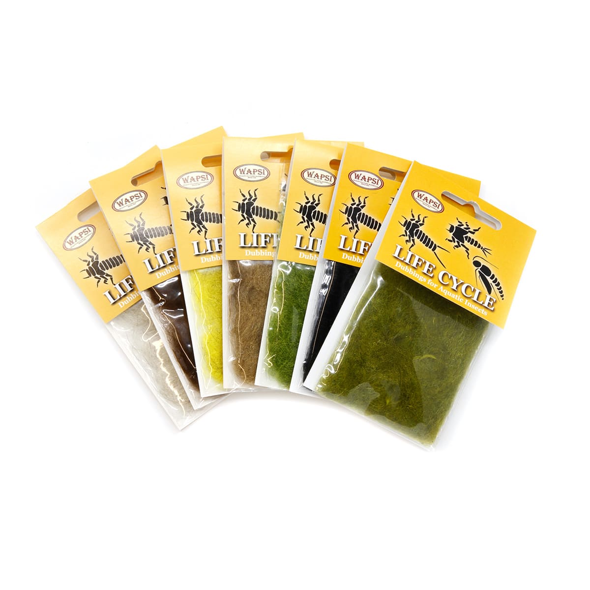 Life Cycle Dubbing frá Wapsi er sérhönnuð blanda af náttúrulegum feldum og völdum skærum litum sem vinna saman að því að endurskapa útlit og áferð algengustu skordýra í straumvatni. Litirnir eru valdir með það í huga að líkja eftir mismunandi þroskastigum skordýra og gefa flugunni dýpt og líf.