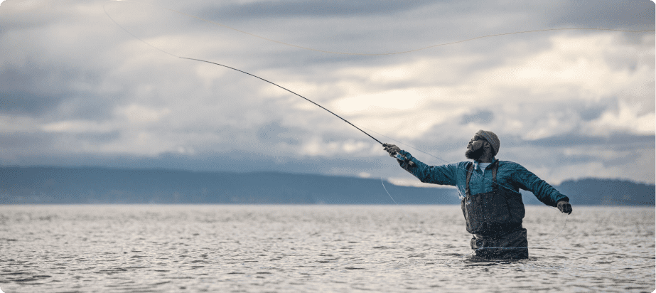 Vöðlur, vöðluskór, veiðifatnaður, veiðitöskur, flugustangir, fluguhjól og ýmsir aukahlutir.